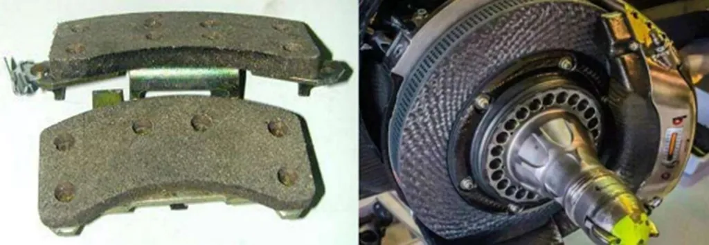 پہلا ایسبیسٹوس بریک پیڈ ہے جو طویل عرصے سے ختم ہو چکے ہیں، اور دوسرا اعلی کاربن فائبر بریک سسٹمز ہیں جو F1 ریسنگ یا پیشہ ورانہ تقریبات کے لیے تبدیل کیے گئے ہیں۔ سابقہ بریک نہیں لگا سکتا، جبکہ بعد والا اسے برداشت نہیں کر سکتا۔